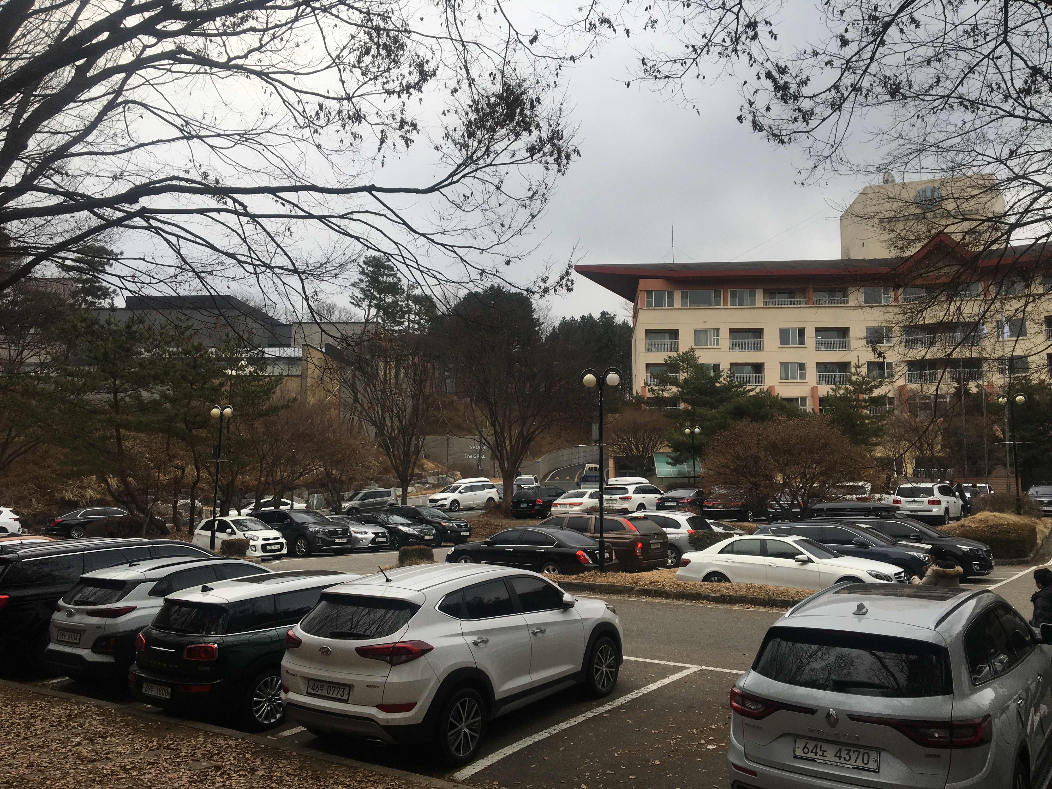 수안보 한화리조트는 소문대로 작은 산 가운데 언덕에 덩그러니 자리잡고 있었다. 사실 요새 숙소를 비교할 때 사이즈보다 더 눈에 띄는 건 세련됨일 것이다. 마치 고급호텔과 중저가호텔, 백화점과 작은 아울렛을 대놓고 비교할때의 차이 같은 것 말이다. 같은 물건도 디스플레이와 조명과 내장 인테리어, 유니폼 같은 것에 따라 상품의 질이 달라보이는 그런 효과.