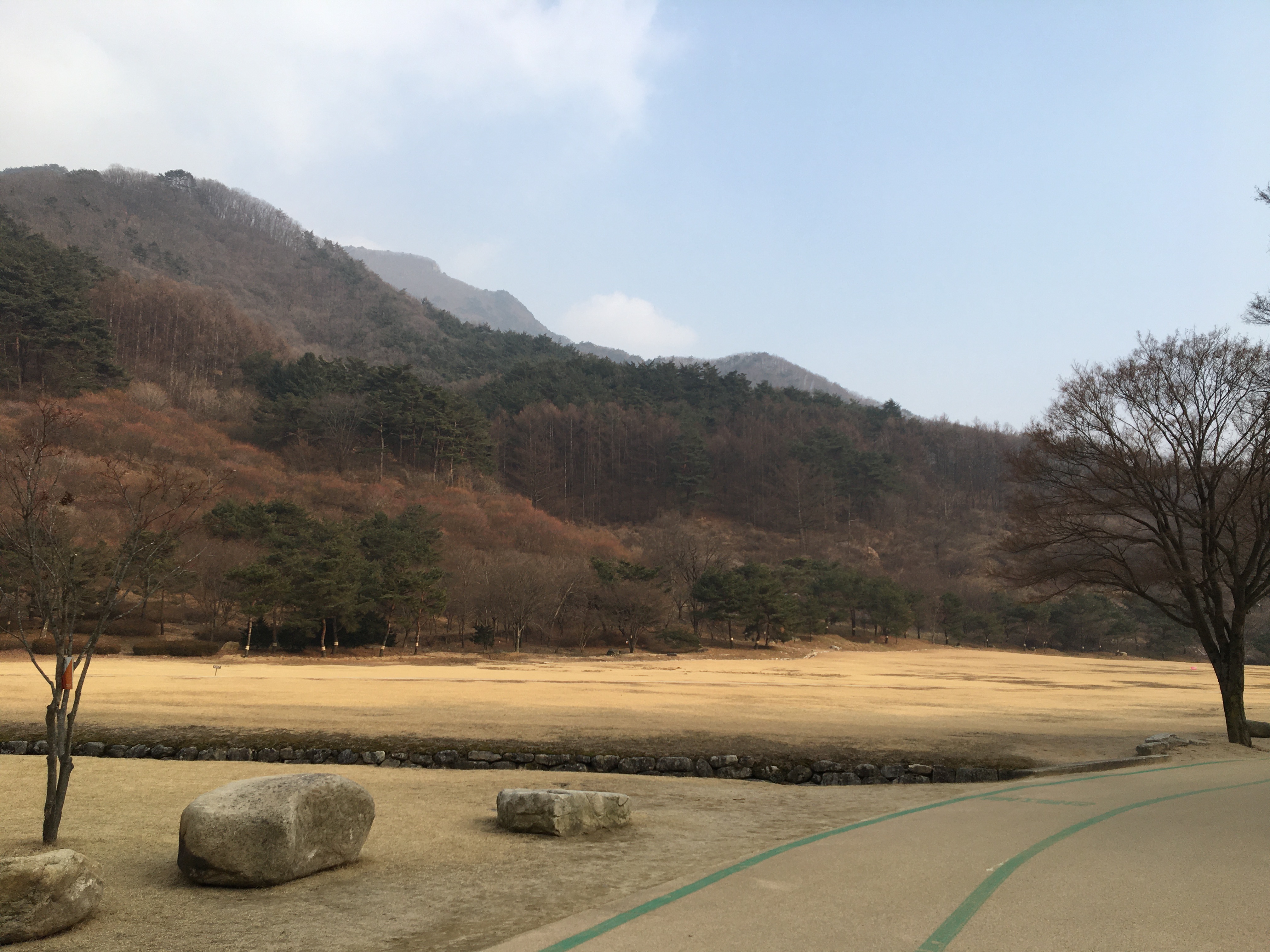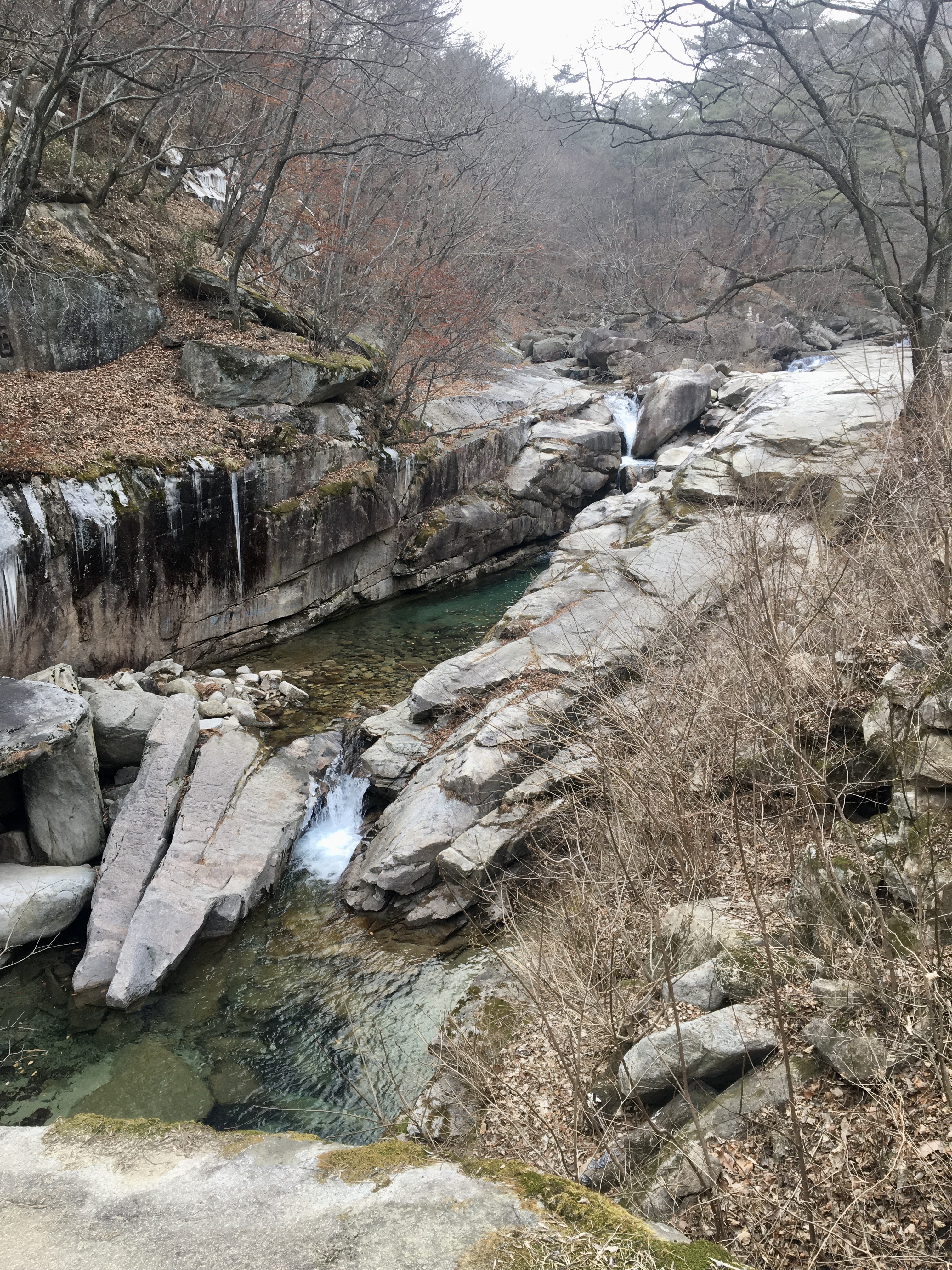 겨울산이라 휑한데도 넓게 뻗은 길을 걷는 것만으로도 상쾌하다. 졸졸졸 물소리도 계속 나고. 힐링되는 기분.