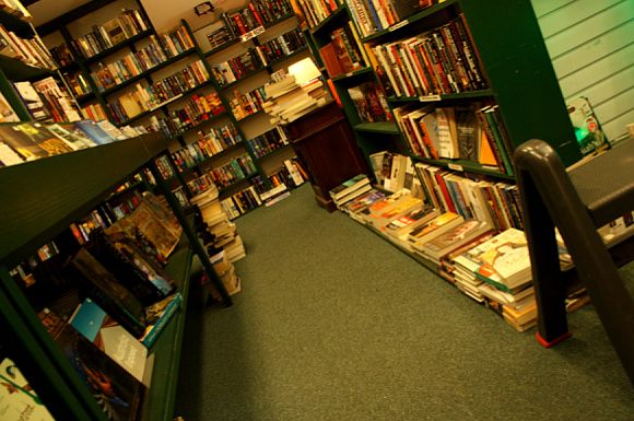 언니랑 잠시 헤어져 혼자 돌아다니던 중 길가에서 작은 서점을 발견했다.온 벽이 녹색. 내방 벽지와 같은 색깔이다.