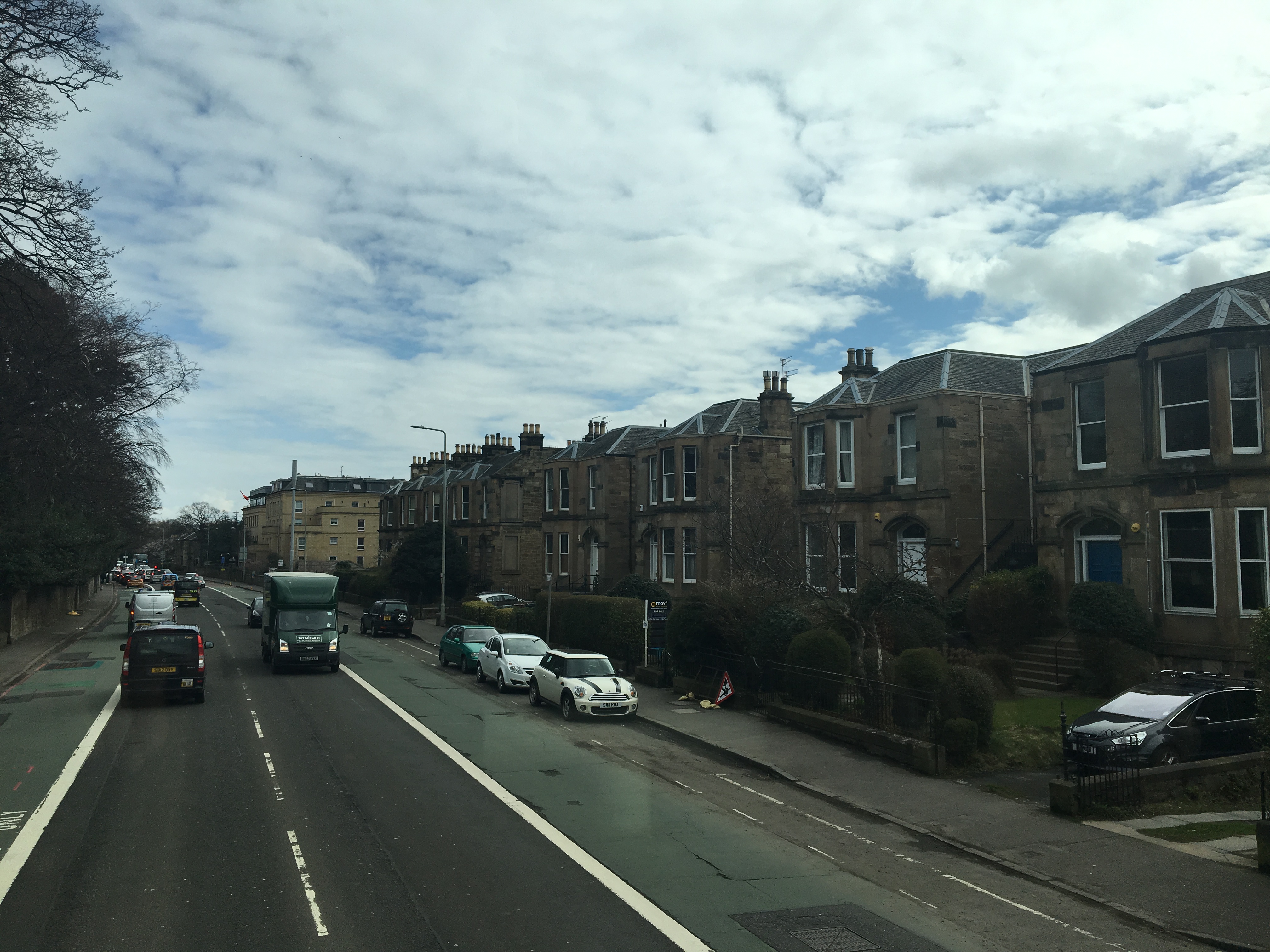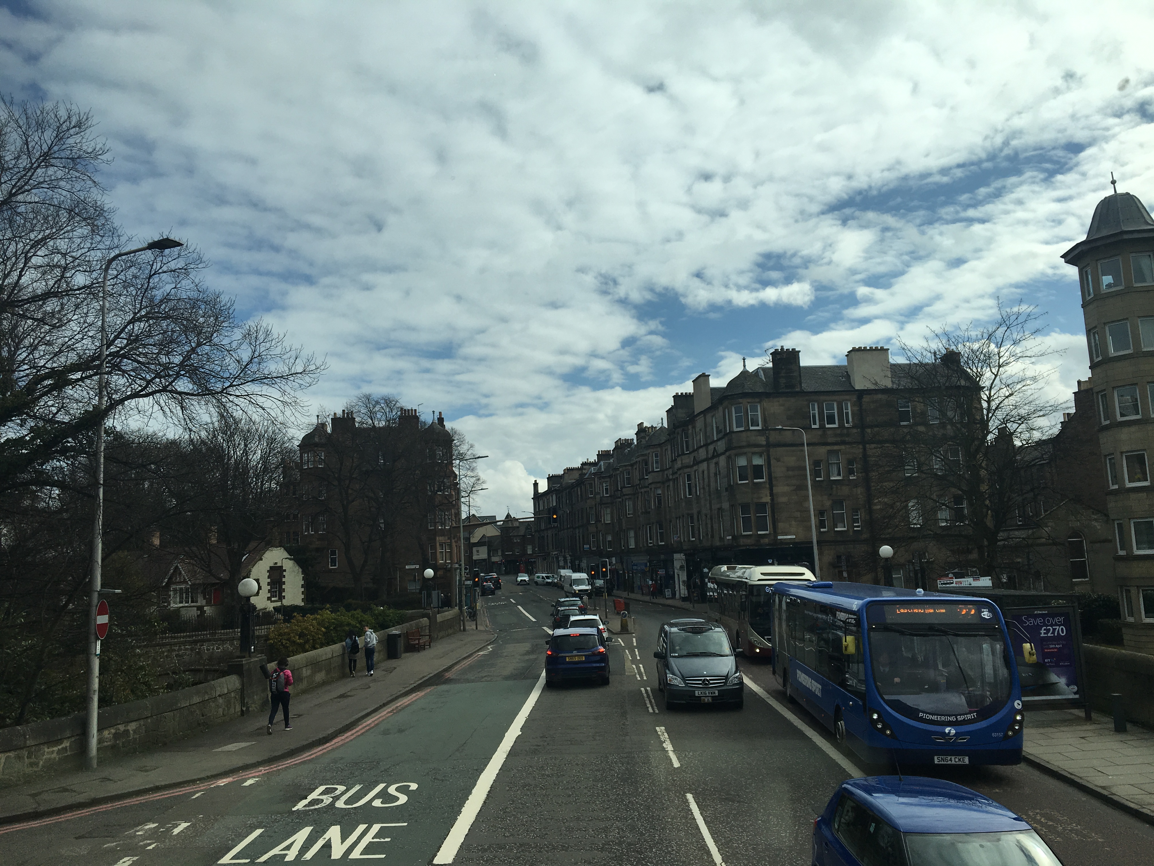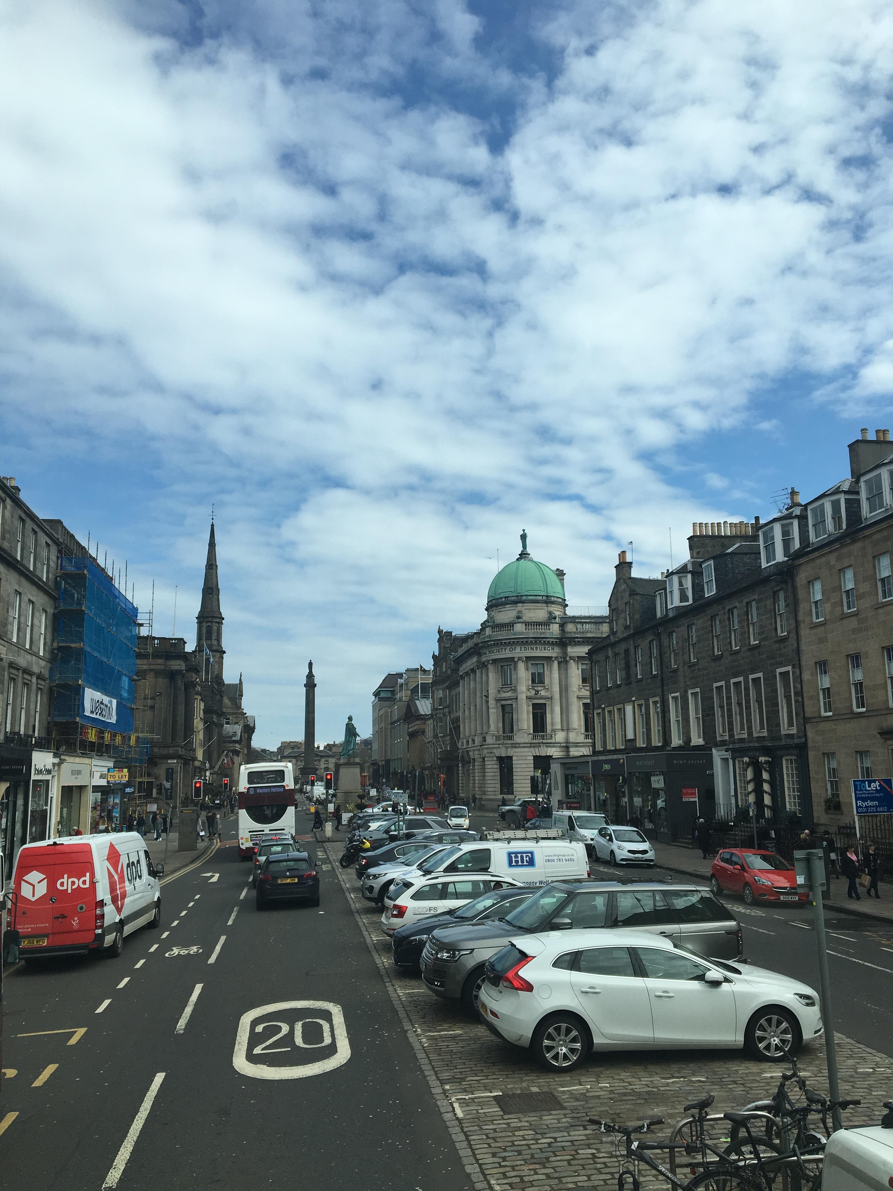 공항버스 2층 맨 앞자리에 앉아 시내로 향했는데 차가 출발한지 십분만에 에든버러가 런던의 삼일보다 훨씬 좋을것 같다는 생각이 문득 들었다. 따뜻한 햇빛. 도로 사이로 늘어서는 고풍스러운 집들.