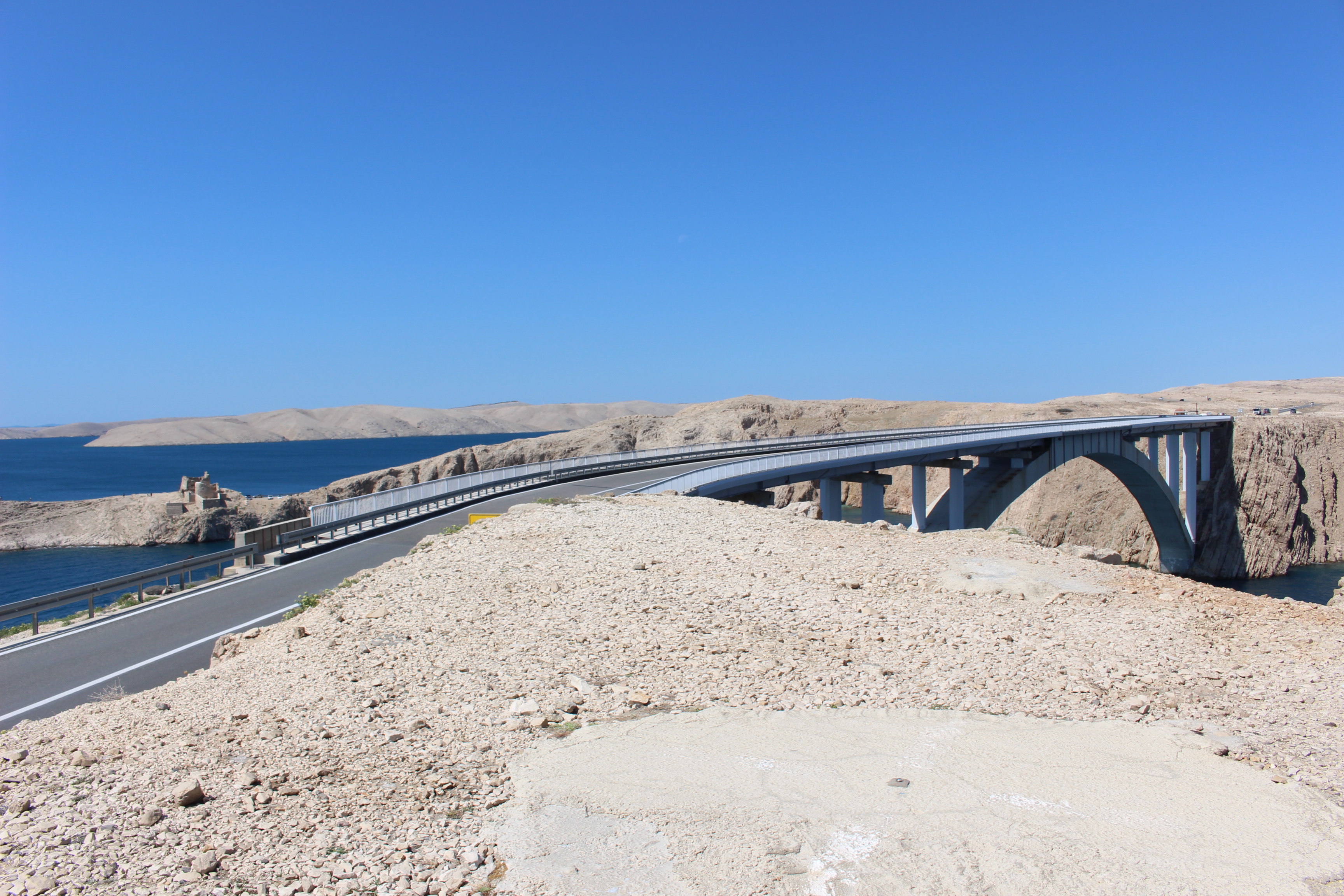 파그섬은 아드리아해에서 다섯번째로 큰 섬이다. 그간 북으로 달려오며 만난 여러 섬 중에서도 압도적인 사이즈이다. 지도에서 보면 남북으로 길게 뻗어있는 모양이 꼭 들어서 달리고 싶은 욕구를 자극한다. 식물이 부족한 파그의 동쪽은 마치 달에서 본 풍경으로 유명하단다. 하지만 조금 더 안쪽으로 들어가면 아름다운 해변과 비옥한 숲도 만날 수 있는 곳.