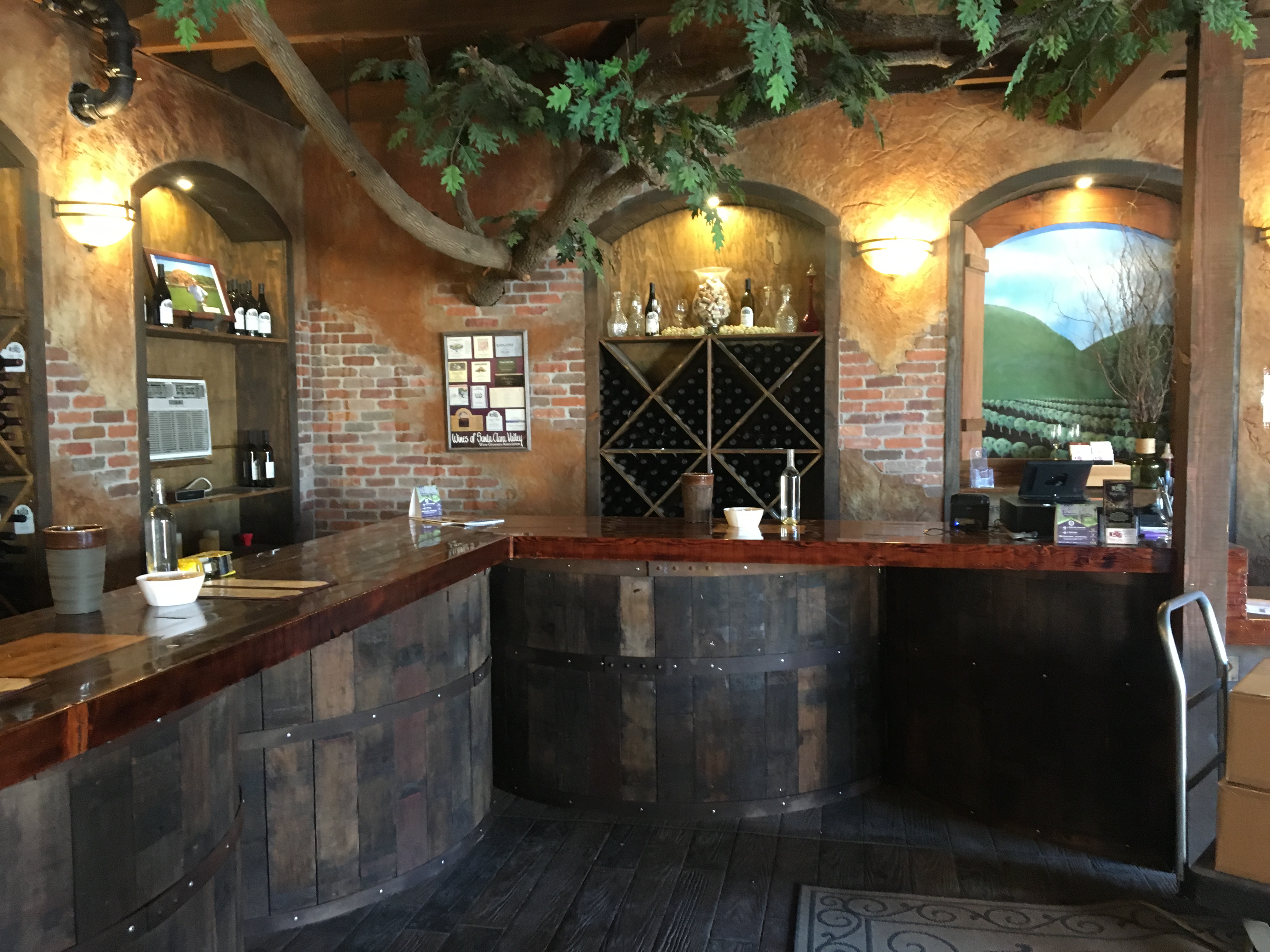 와이너리 입구 양쪽에는 큰 오크통으로 장식한 간판이 떡하니 자리하고 있다. 들어가니 자그마한 주차장도 한산하고 인적도 별로 없는데 태양만이 작열한다. 차문을 열고 나왔더니 훅하는 열기 - 한켠에 마련되어있는 테이스팅룸으로 향했다. 갑자기 어두워진 조도에 선글라스를 벗었다. 벽을 따라 디귿자로 짜여진 나무 바 앞에 젊은 남자 한명이 서 있다.